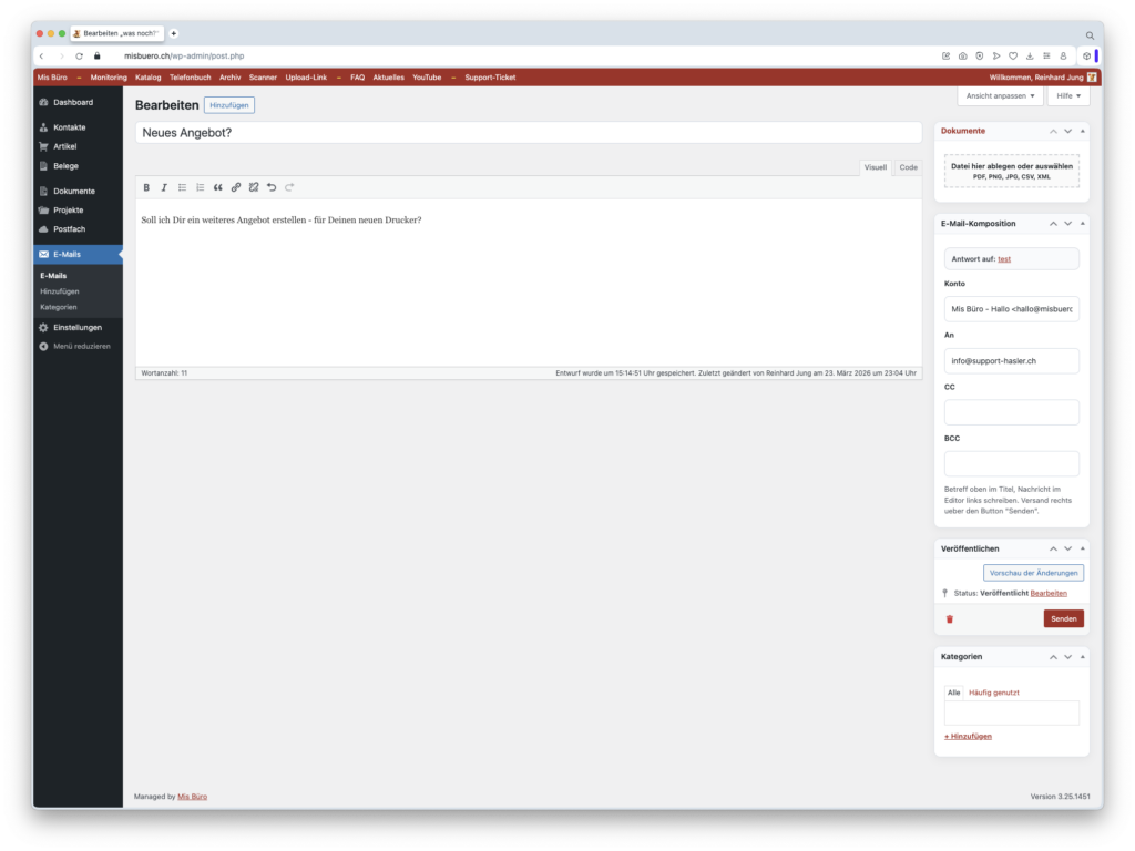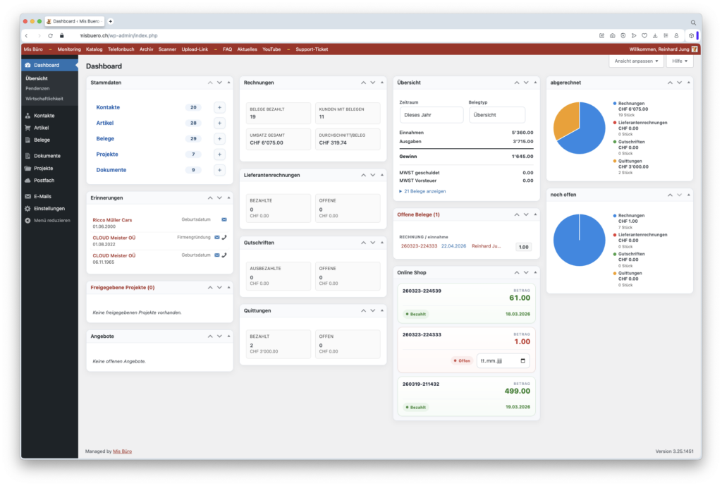 Es ist eine moderne, DSGVO-konforme Bürosoftware auf Basis von WordPress.