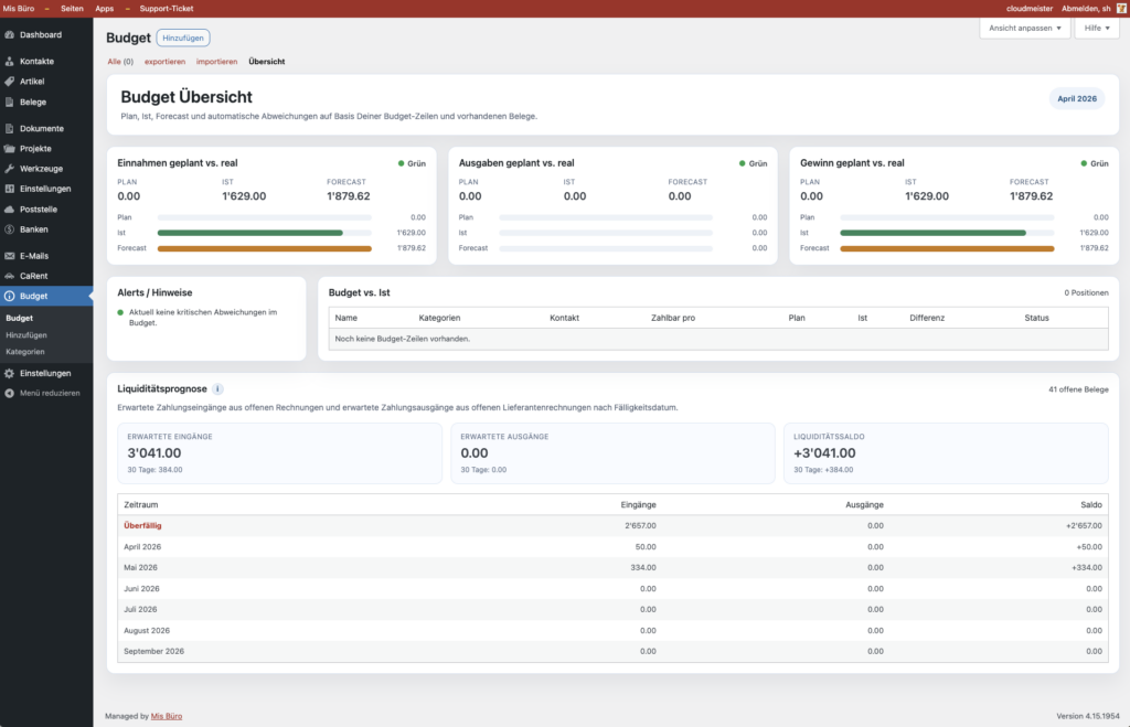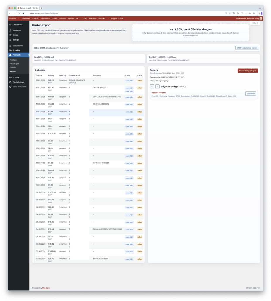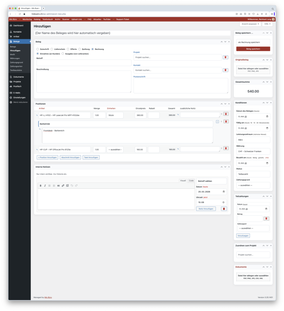Rechnungen, Offerten, Belege und Kontakte zentral verwalten. Klar und übersichtlich.