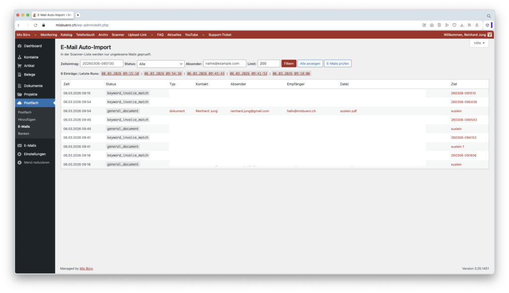 Scanne Deine Dokumente direkt in den Posteingang von Mis Büro, damit Du sie anschliessend effizient prüfen, kategorisieren und verbuchen kannst.
